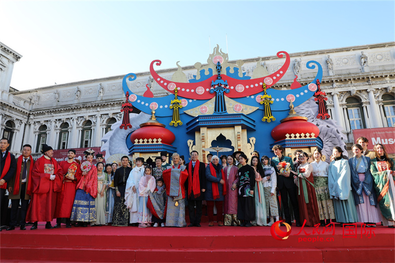 人民網(wǎng)威尼斯2月14日電 (記者謝亞宏)2月13日,為期兩周的年度威尼斯狂歡節(jié)迎來最后一天,期間舉行了威尼斯大學(xué)孔子學(xué)院與蘇州絲綢博物館合作主辦的漢服巡游活動(dòng)。