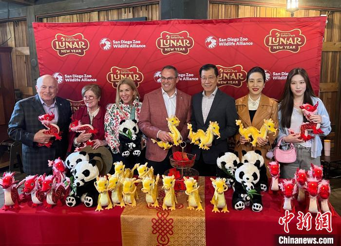 當(dāng)天上午,印著祥龍圖案的紅燈籠、結(jié)滿果實(shí)的金桔樹和鮮花盛放的桃樹將圣地亞哥野生動(dòng)物園裝點(diǎn)一新。中國(guó)駐洛杉磯總領(lǐng)事郭少春及夫人王薇、美國(guó)圣地亞哥動(dòng)物園野生動(dòng)植物聯(lián)盟總裁兼首席執(zhí)行官潘禮邦(Paul Baribault)與首席市場(chǎng)官穆德威(David Miller)等中美各界人士齊聚一堂,同當(dāng)?shù)馗髯逡崦癖姽蚕泶汗?jié)的喜悅。