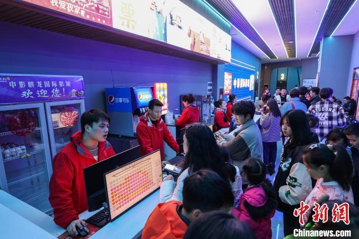 圖為觀影者在購(gòu)票、購(gòu)買零食。 中新網(wǎng)記者 瞿宏倫 攝