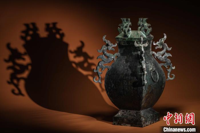 據(jù)史料記載,中山多美物,工匠們普遍技藝高超、技術(shù)精湛。展廳中,另一件中山國(guó)遺址出土文物中山王厝刻銘銅方壺吸引眾人駐足。壺的四角,4條神采奕奕的矯龍正在奮力向上攀爬。