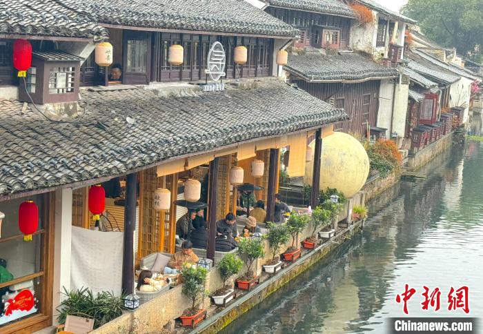 今年春節(jié)期間,倉橋直街河畔的新中式茶館座無虛席。項菁 攝