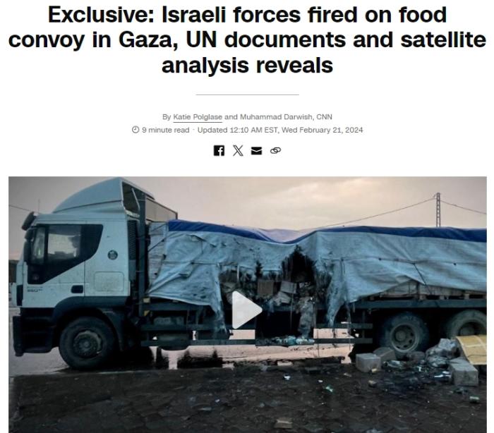 CNN:以軍曾向聯(lián)合國(guó)加沙運(yùn)糧車(chē)隊(duì)開(kāi)火 大量物資被毀