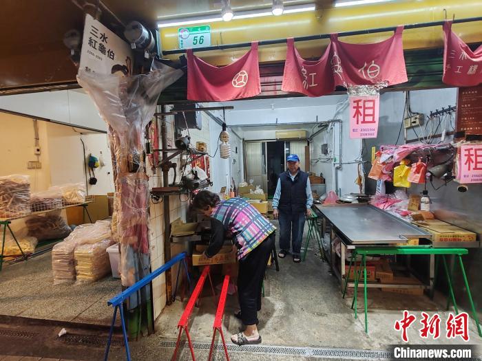 位于臺(tái)北萬華區(qū)的三水紅龜伯是經(jīng)營(yíng)近70年的米食老攤,年逾80歲的陳新桂、董敏卿夫婦每天清晨4點(diǎn)便會(huì)手工磨米炊粿?!≈行律缬浾?楊程晨 攝