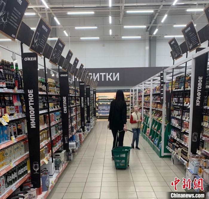 2023年10月,俄羅斯圣彼得堡一超市內的酒類銷售區(qū)。 中新社記者 商永 攝