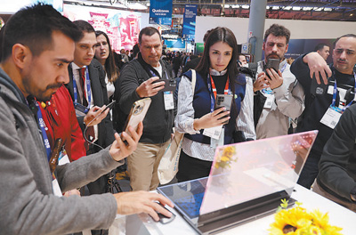 走向會展中心三號展廳的東側(cè),一臺屏幕全透明的筆記本電腦吸引了很多參觀者,不少人舉起手機(jī)拍照留念。這款由聯(lián)想集團(tuán)推出的筆記本電腦,無邊框的屏幕、透明的鍵盤區(qū)域,簡約且充滿未來感。產(chǎn)品利用人工智能技術(shù),將物理對象與數(shù)字信息相結(jié)合,為工作協(xié)作和提高效率開辟了新途徑:將一束向日葵放在屏幕后方,使用者可以在屏幕正面描摹花的形狀,攝像頭會識別面前的物品,在屏幕右側(cè)用文字說明向日葵的種植方式、植物特征等?!斑@是個(gè)人電腦未來的一大發(fā)展方向,令人印象深刻?!备鐐惐葋喴患铱萍济襟w的撰稿人伊萬·盧薩爾多表示,“中國產(chǎn)品極大豐富了用戶體驗(yàn)。”