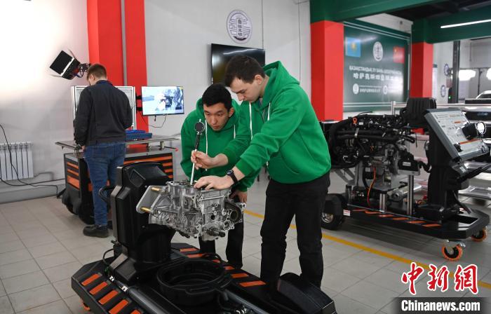 當?shù)貙W(xué)生在哈薩克斯坦魯班工坊內(nèi)實操演練?! 」偨y(tǒng)府官網(wǎng)供圖