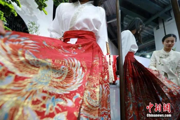 曹縣辰霏服飾有限公司作為線上和線下銷售為一體的漢服企業(yè),在節(jié)前就大約售出了1.6萬件馬面裙,這一數(shù)字是去年的3到4倍。據(jù)該公司總經(jīng)理孟曉霞介紹,春節(jié)期間,基本每天都有客戶選購龍年拜年服,每天大約200人次至300人次的客流量,“印有龍鳳等圖案的原創(chuàng)紅色系馬面裙尤為受歡迎。”