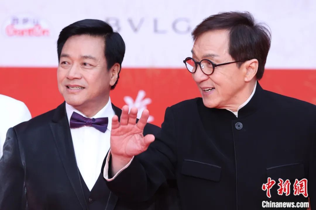 2023年4月,成龍(右)、唐季禮亮相第十三屆北京國(guó)際電影節(jié)開幕紅毯。蔣啟明 攝