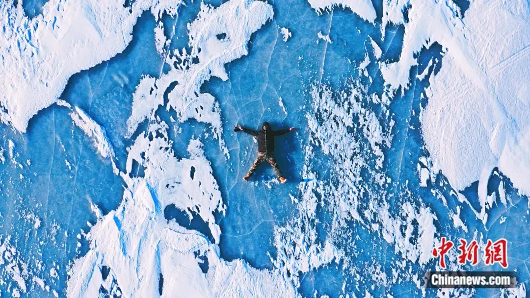 清澈的湖水冰凍后變成了深邃的藍(lán)色,被游客譽(yù)為“藍(lán)眼睛”。 田昊霖 攝
