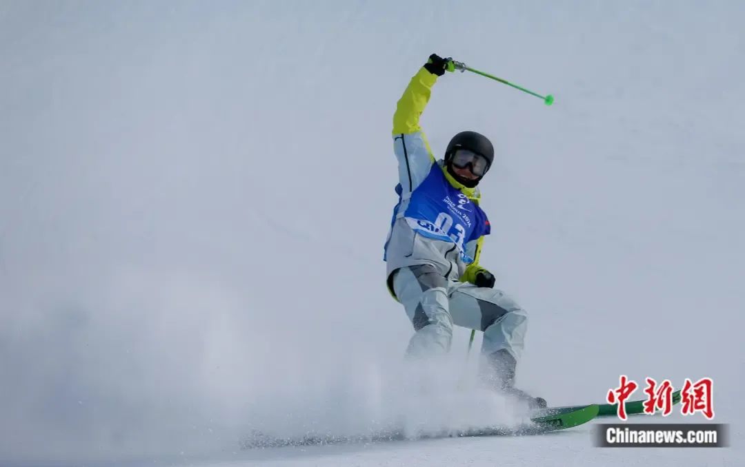 “十四冬 ”自由式滑雪空中技巧公開組女子個(gè)人比賽中,徐夢桃在空中翻飛。 韓冷 攝