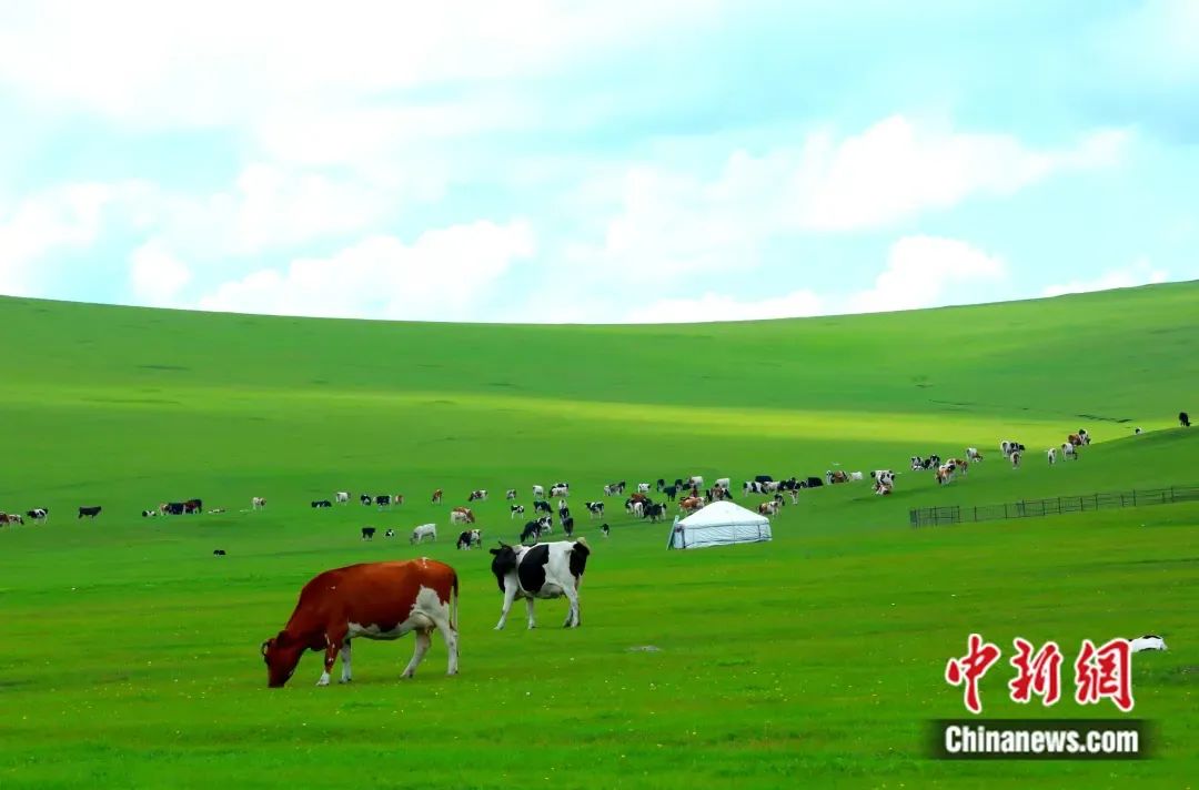 夏季的呼倫貝爾草原水草豐美,牛羊成群。 蔣希武 攝