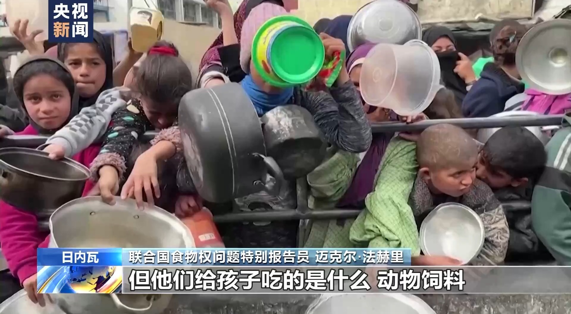 聯(lián)合國食物權(quán)問題特別報(bào)告員 邁克爾·法赫里:在加沙地帶很多人已經(jīng)放棄吃飯,把食物留給孩子。但他們給孩子吃的是什么?動物飼料。他們給孩子喝什么水?臟水。這會讓他們的孩子更容易生病。