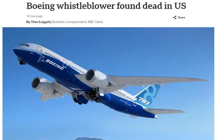 據(jù)BBC最新消息,這名曝光波音質(zhì)量亂象的“吹哨人”,于2024年3月9日被發(fā)現(xiàn)在美國一家酒店停車場(chǎng)內(nèi)身亡,事件正在調(diào)查中。