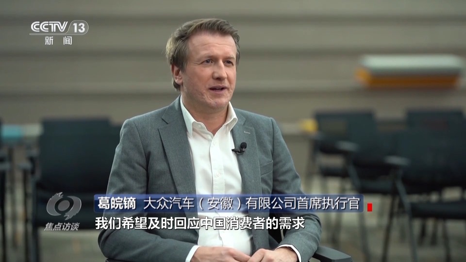 大眾汽車(安徽)有限公司首席執(zhí)行官 葛皖鏑:借助于這個(gè)研發(fā)中心,我們希望及時(shí)回應(yīng)中國消費(fèi)者的需求,這意味著一方面,我們要打造大眾汽車集團(tuán)首個(gè)專屬中國市場的電動汽車平臺;另外一方面,我們希望將其開發(fā)周期縮短約30%,這樣才能夠跟上中國市場的步伐。