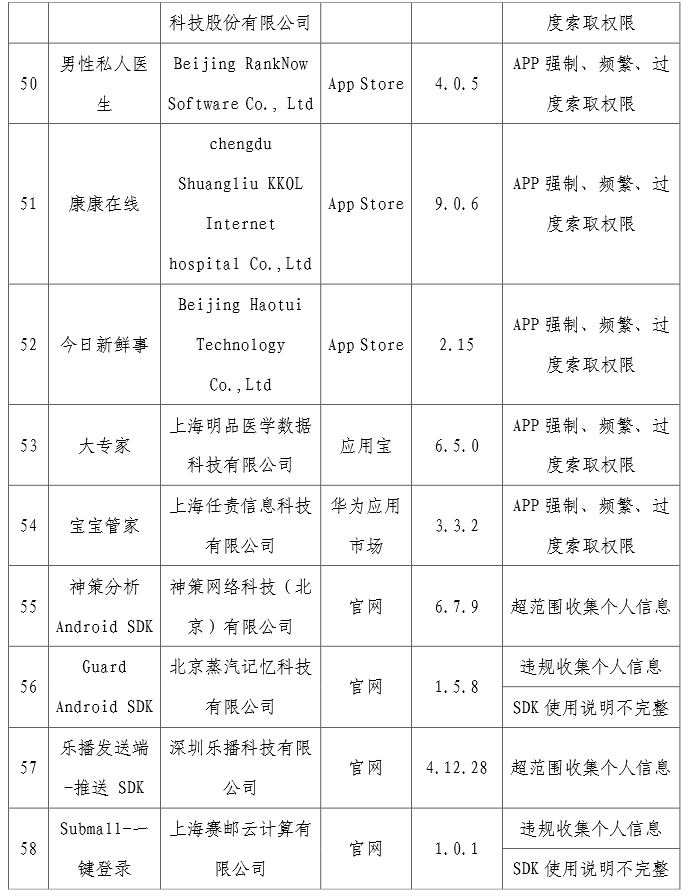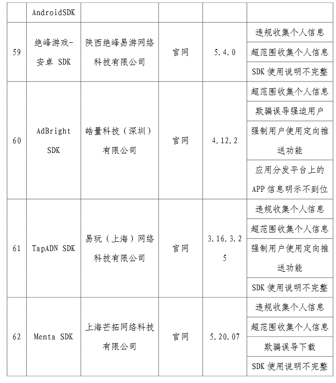 工信部通報(bào)62款存在侵害用戶(hù)權(quán)益行為的APP(SDK)