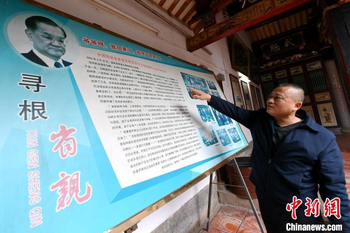 宗祠內(nèi)展示的文圖資料,記述了兩岸宗親交往交流的血脈親情。連惠南告訴記者,那次祭祖儀式后,連戰(zhàn)為祖地宗祠題詞“明心見(jiàn)性,垂教后嗣,積善福世,上繼祖德”。