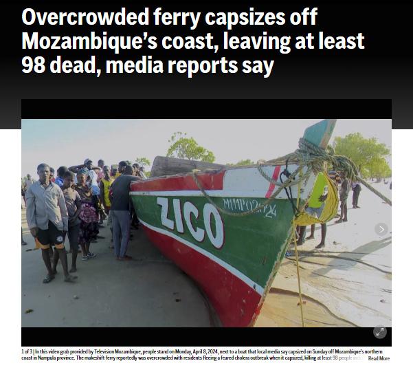 中新網(wǎng)4月9日電 據(jù)美聯(lián)社當?shù)貢r間4月8日報道,一艘臨時渡輪在莫桑比克北部海岸傾覆,已造成至少98人死亡,其中包括多名兒童。