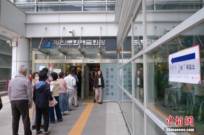 當(dāng)?shù)貢r(shí)間4月10日,韓國第22屆國會議員選舉啟動正式投票,各政黨候選人將角逐國會300個(gè)議席。圖為選民排隊(duì)進(jìn)入首爾市廣津區(qū)一處投票站。
