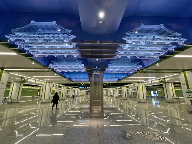 在車站裝修方面,地鐵19號線車站在裝修設計中突出“薈萃京華”的總體設計概念,在車站風格中體現(xiàn)北京傳統(tǒng)與現(xiàn)代精華,全線站廳通道口、換乘通道及站臺樓扶梯三角房處以突出導向性和識別性為原則進行重點裝修。以“鳳凰于飛—鳳祥燈會”為設計主題的新發(fā)地站、繪有“雙鯉戲水”的積水潭站、加入牡丹和景泰藍元素的牡丹園站……乘客可在各站感受到多元化的“地鐵藝術”。