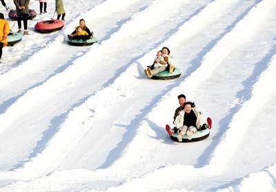 1月2日,游客在臨城縣綠嶺冰雪樂園滑雪圈,享受冰雪樂趣。河北日報(bào)記者 趙永輝攝