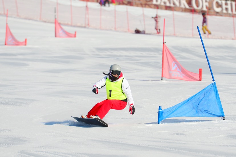 當天上午9點20分,大眾滑雪組單板滑雪大回轉(zhuǎn)比賽正式開始。賽場上,選手們速度與技巧的完美結(jié)合,博得了在場觀眾陣陣喝彩。隨后進行的高山滑雪大回轉(zhuǎn)比賽也同樣精彩。選手迅速沖出起點,雙手緊握雪杖用力后撐,加速向前滑行,靈巧地在賽道上轉(zhuǎn)變滑行方向,從一個個旗門中輕巧地回轉(zhuǎn)而過,每一次急停和回轉(zhuǎn),都濺起一簇簇潔白的雪花。