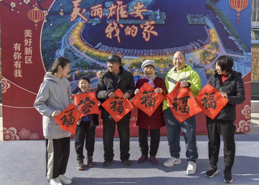 1月10日,河北文藝界“送福進萬家”文化惠民暨采風創(chuàng)作活動走進雄安,省文聯(lián)組織30名書法、攝影藝術家深入雄安容東回遷安置片區(qū),為第一批喬遷新居的容東市民送去6000余副春聯(lián)、福字,為市民拍攝“全家福”。