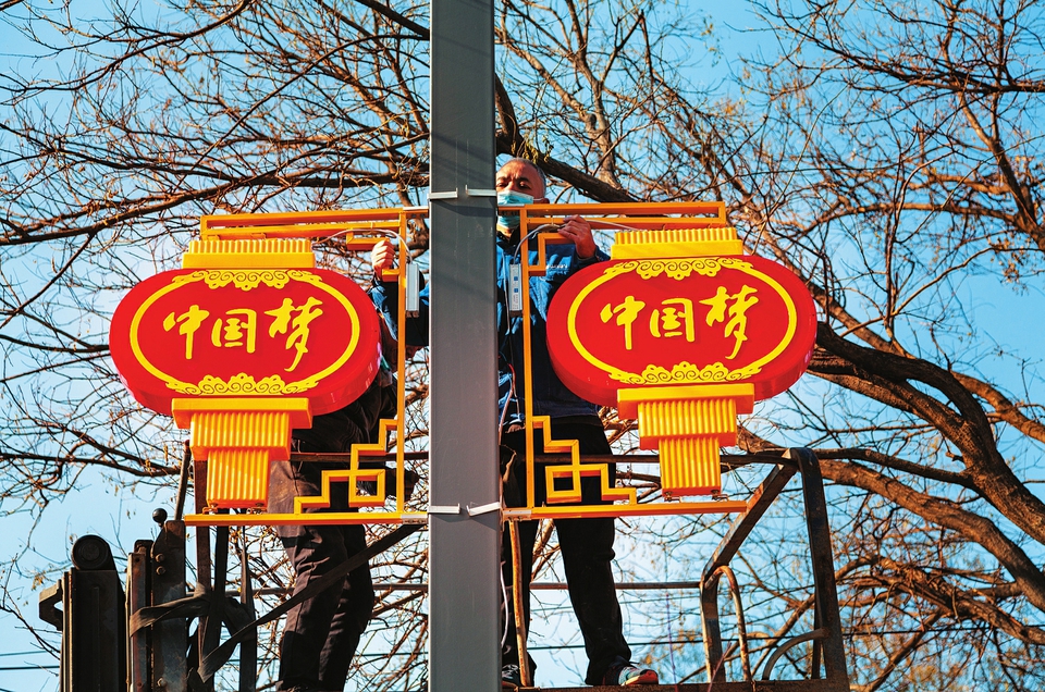 1月11日,工作人員在運(yùn)城市鹽湖區(qū)紅旗街上安裝花燈。臨近春節(jié),運(yùn)城市城市管理局組織人力在市區(qū)主要街道裝置迎新花燈,花燈有燈籠、中國(guó)結(jié)、鞭炮等多種造型,扮靚了城市,也營(yíng)造出歡樂(lè)、祥和、喜慶的節(jié)日氛圍。(茹雅攝)