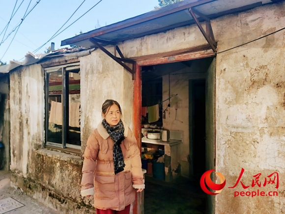 樓房住戶林菊芬(左)稱不久前樓上掉下水泥塊,“住得提心吊膽”。人民網(wǎng)記者 王繼亮攝