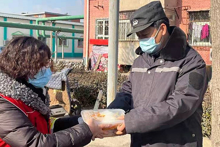 志愿者為核酸檢測(cè)點(diǎn)位送去餐食。寧河區(qū)供圖