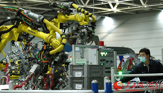 滄州搶抓京津冀協(xié)同發(fā)展機(jī)遇,積極承接京津疏解企業(yè)項(xiàng)目。(圖為,近日,工人在北京現(xiàn)代滄州工廠車身車間生產(chǎn)線上工作)。 苑立偉攝