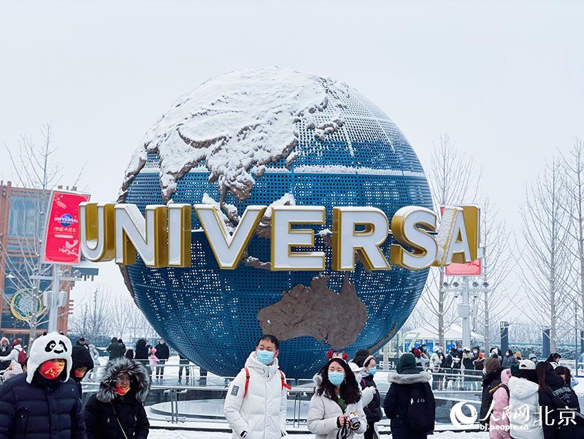 在紛紛揚(yáng)揚(yáng)的雪花中,北京環(huán)球度假區(qū)開啟了首個“環(huán)球中國年”季節(jié)性主題活動。人民網(wǎng) 董兆瑞攝