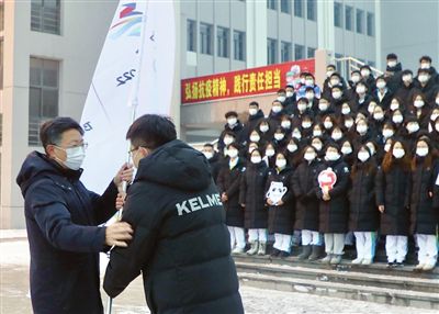 1月23日早7時(shí)許,河北工業(yè)大學(xué)舉行冬奧志愿者出征儀式,227名師生志愿者在國(guó)旗下莊嚴(yán)宣誓:“志愿青春,冬奧有我!”