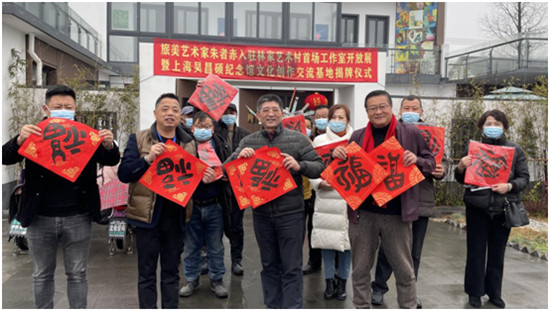 現(xiàn)場(chǎng),朱者赤還即興提筆,墨躍紅紙,以倒序筆畫寫下福字,以此寄予“福到了”的新年祝福。作為入駐林家藝術(shù)村的第一批自由職業(yè)藝術(shù)家,朱者赤認(rèn)為,鄉(xiāng)村的自然恬淡能為藝術(shù)家的創(chuàng)作帶來許多靈感,而藝術(shù)賦能也會(huì)對(duì)美麗鄉(xiāng)村建設(shè)會(huì)起到推進(jìn)作用,他希望自己能在其中發(fā)揮作用,在不斷創(chuàng)作創(chuàng)新的同時(shí),讓更多藝術(shù)美走進(jìn)鄉(xiāng)村中去。