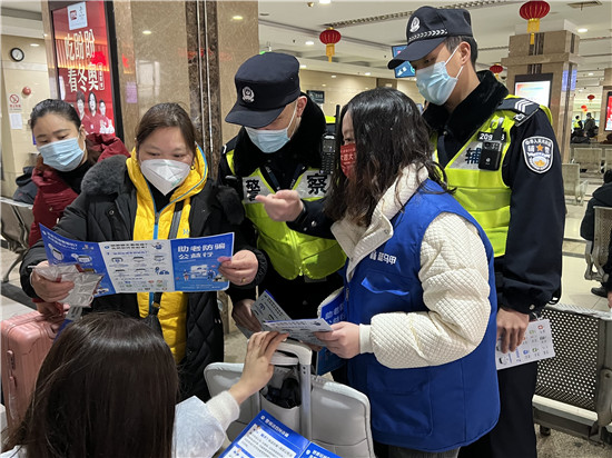 今年春運(yùn)從1月17日開始,2月25日結(jié)束,共計(jì)40天。為確保廣大旅客平安有序溫馨出行,同時(shí)更好地發(fā)揮志愿服務(wù)在服務(wù)百姓民生、服務(wù)社會(huì)治理中的重要作用,靜安警方聯(lián)合轄區(qū)企業(yè)成立志愿者服務(wù)隊(duì),深入上?;疖囌尽㈤L(zhǎng)途客運(yùn)總站等周邊交通樞紐,組織100余名志愿者組成5支由民警和志愿者混編的志愿服務(wù)小分隊(duì)。在抓好疫情防控的同時(shí),強(qiáng)化春運(yùn)服務(wù)和安全管理,開展形式多樣的“春運(yùn)暖程”志愿服務(wù)關(guān)愛行動(dòng),確保旅客平安出行。