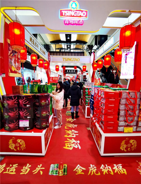 而青島啤酒“百年之旅“憑借獨(dú)一無(wú)二的珍惜原材、不惜工本的耗時(shí)慢釀、與無(wú)與倫比的琥珀原色和恒久回味,也在春節(jié)超高端市場(chǎng)上有叫好叫座?!比ツ曜咴L客戶(hù)就送的‘百年之旅’,有特色又有排面,客戶(hù)反饋特別好,今年特地團(tuán)購(gòu)一批,公司年會(huì)聚餐也喝他?!澳惩赓Q(mào)公司采購(gòu)部的劉先生,正在和超市的經(jīng)理談大宗采購(gòu),作為青島”特產(chǎn)“的青島啤酒,是他們每年過(guò)年的首選禮品,”還有今年推出虎年版的百年鴻運(yùn),特別新年應(yīng)景,配上特有的搖擺蓋開(kāi)起來(lái)特別有氣氛,喜慶。“