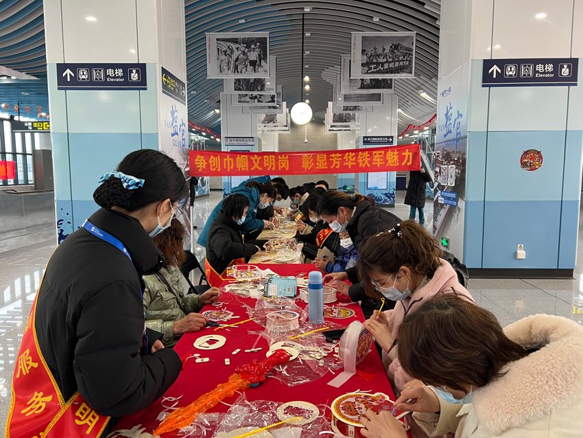 鬧元宵、扎虎燈、猜燈謎……節(jié)日里的杭海城際鐵路各車站熱鬧非凡。在張燈結(jié)彩的海寧海昌路站,工作人員熱情邀請乘客參加猜燈謎活動(dòng)?;顒?dòng)中,乘客們有的凝眉思考,有的積極討論,歡歡喜喜猜著燈謎,為節(jié)日里增添了一份歡樂和喜悅。海寧鹽官站又是另一番歡樂的場景,工作人員親自動(dòng)手,制作出一盞盞漂亮的虎燈,乘客們紛紛圍攏過來駐足觀看,希望在新的一年里贏得“好兆頭”,現(xiàn)場一片其樂融融,歡聲笑語。