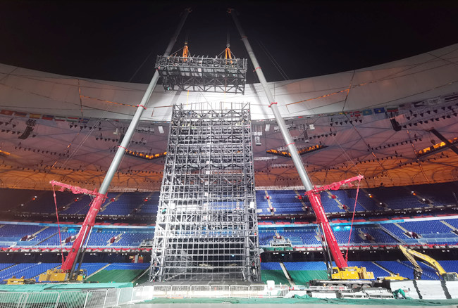 矗立在“鳥巢”東側(cè)跑道中心區(qū)域的巨幅屏幕被稱為“冰瀑”,由鋼結(jié)構(gòu)和LED顯示屏組成,在開幕式上呈現(xiàn)了“黃河之水天上來”的震撼效果。拆除大屏幕主體鋼結(jié)構(gòu)成為“鳥巢”轉(zhuǎn)場(chǎng)的關(guān)鍵。