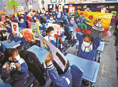 昨天是本市中小學生春季學期開學首日,各校的開學第一課紛紛以傳播“冬奧精神”為主打,將冬奧融入“大思政課”。圖為昨天,中科院附屬玉泉小學,同學們展示自己在寒假里創(chuàng)作的以冬奧、“冰墩墩”為主題的藝術(shù)作品。攝影/本報記者 郝羿