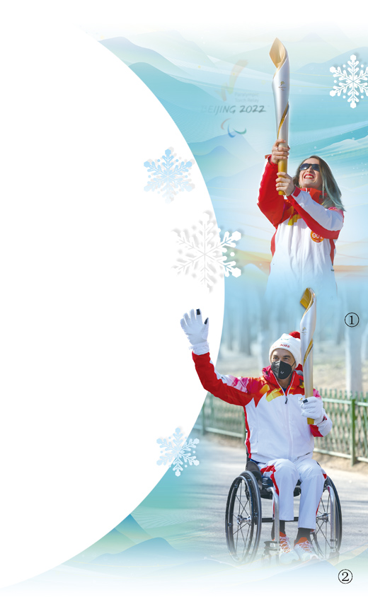 圖①:3月3日,火炬手、國際殘奧委會運動員委員會委員瑪?shù)倌取P羅尼傳遞火炬。