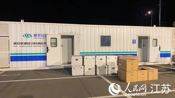 “在連云港市消防救援支隊約50名隊員的幫助下,僅用14小時就完成組裝工作,20小時即可開展全面核酸檢測工作?!睔饽嶒炇医M裝負責人、北京迪安醫(yī)學檢驗實驗室有限公司員工盛強說。