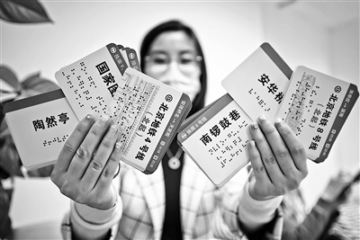 一位盲人朋友摸讀著盲文線路卡禁不住激動(dòng)地讀出了聲。他說:“這個(gè)線路卡真的很棒,它讓我詳細(xì)了解到地鐵沿線到達(dá)各站。特別是卡片上的通用盲文點(diǎn)字飽滿而圓潤,摸上去手感特別好。我特別喜歡這個(gè)環(huán)裝的設(shè)計(jì),覺得特別有新意,這跟我們以前傳統(tǒng)的盲文讀物相比特別洋氣?!?/p>