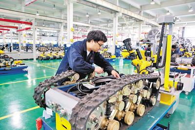 中信重工開誠智能裝備有限公司組裝人員正在組裝消防機(jī)器人底盤。 中信重工開誠智能裝備有限公司供圖