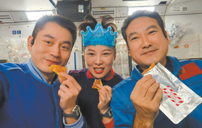 執(zhí)行迄今時(shí)間最長一次太空飛行,神舟十三號航天員趕上了第一次在太空跨年,第一次在空間站過春節(jié)。在地面團(tuán)隊(duì)的精心保障下,航天員們除夕夜為人們送上來自太空的新年祝福,在空間站度過了年味十足、充實(shí)精彩的虎年春節(jié)。從太空出艙、“天宮課堂”開講,到手控遙操作完成貨運(yùn)飛船與空間站組合體交會(huì)對接試驗(yàn),從中國女航天員首次太空漫步,到3名航天員太空飛行累計(jì)超100天,太空“出差”期間,航天員們開展了一系列空間科學(xué)實(shí)驗(yàn)和技術(shù)試驗(yàn),刷新了一個(gè)又一個(gè)中國航天紀(jì)錄,為中國空間站正式建成打下堅(jiān)實(shí)基礎(chǔ)。