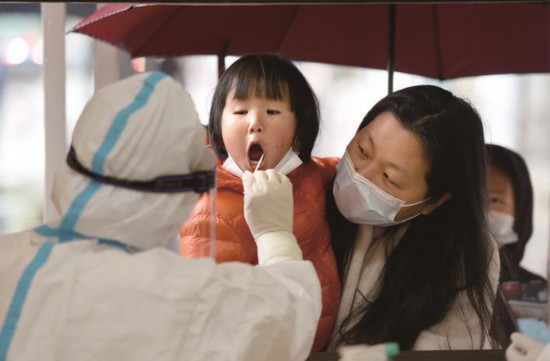 3月20日,在嘉興秀洲區(qū)新城街道核酸采樣點(diǎn),市民們冒雨前來(lái)參加核酸檢測(cè)?,F(xiàn)場(chǎng),有不少小朋友跟著家長(zhǎng)參加檢測(cè),面對(duì)和藹可親的醫(yī)護(hù)人員,小朋友們積極配合,一個(gè)個(gè)表現(xiàn)得特別勇敢。(馮玉坤)