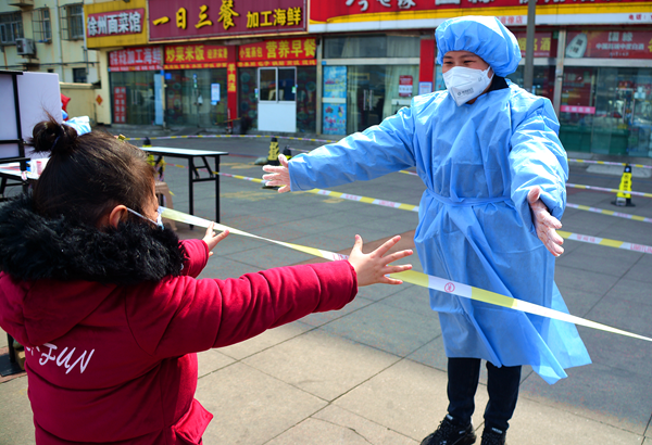 3月4日晚,連云港市海州區(qū)發(fā)現(xiàn)1例陽性人員,港城疫情防控阻擊戰(zhàn)就此打響。5日早上6點(diǎn)半,孫麗群接到參與核酸檢測(cè)服務(wù)工作的通知,第一時(shí)間將讀小學(xué)的女兒送到姐姐家照顧,轉(zhuǎn)頭便投入到疫情防控工作中去。相隔十幾天不見,女兒在做核酸檢測(cè)時(shí)見到了媽媽,思念的淚水瞬間“決堤”。
