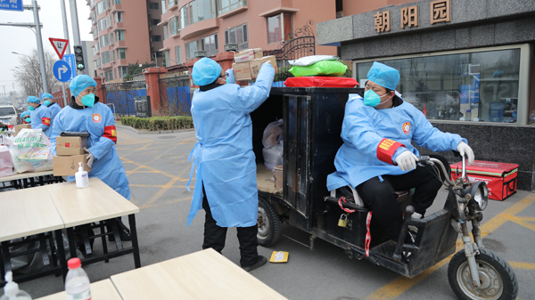 北京朝陽園小區(qū):一線防疫人員當(dāng)臨時(shí)"騎手" 保障居民生活