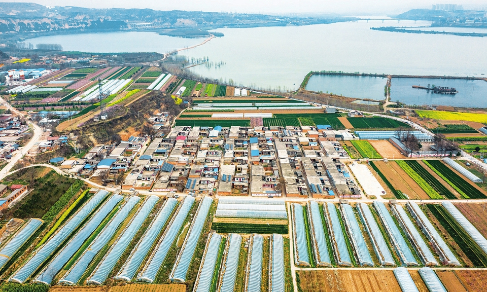 3月18日,春風(fēng)輕拂下的平陸縣張村鎮(zhèn)后地村,風(fēng)光旖旎。近年來,運城市持續(xù)推進鄉(xiāng)村振興戰(zhàn)略,農(nóng)村面貌如畫如詩,整齊的民居、鮮艷的桃花、連片的大棚交相輝映,構(gòu)成一幅秀美的新農(nóng)村畫卷。(薛俊攝)