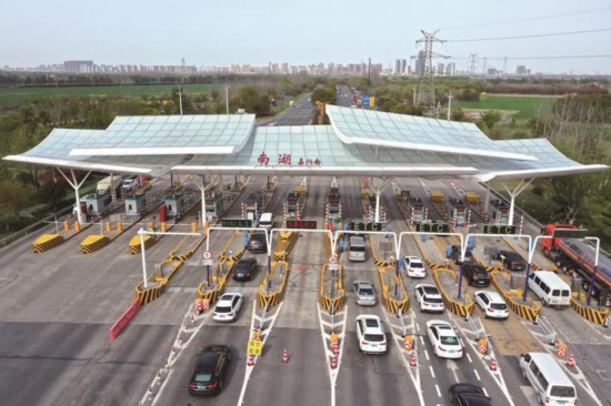 3月28日下午,在嘉興高速南湖收費站外廣場,防疫人員對來嘉車輛進(jìn)行健康碼、行程卡的檢查,守好嘉興“南大門”。(趙穎碩)