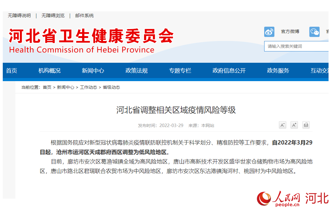 河北省調(diào)整相關(guān)區(qū)域疫情風(fēng)險等級