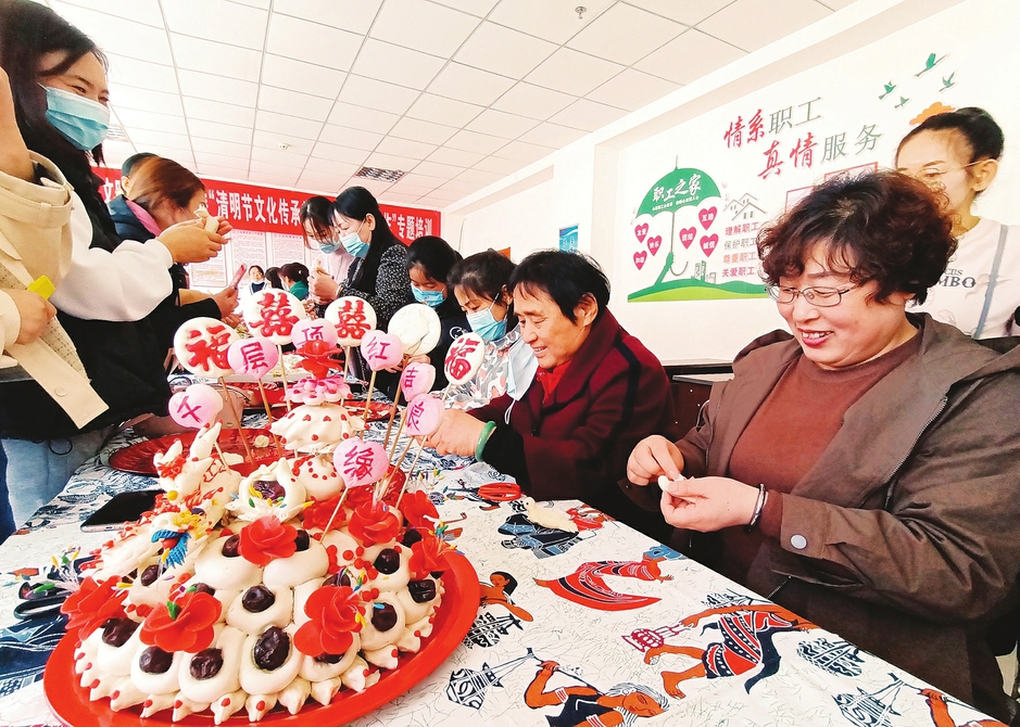 三月二十七日,石樓縣新時代文明實踐中心開展“清明節(jié)文化傳承教育和傳統(tǒng)美食制作”專題培訓,邀請“面花”手藝人現場教授捏面燕,倡導移風易俗、文明祭祀。(李晶晶攝)